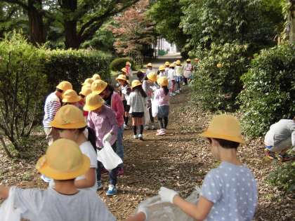 21日。1年生が生活科の学習で、都立園芸高校の敷地内を散策させていただきました。広い敷地の中はすてきな秋の落し物がたくさんあり、子どもたちは夢中で拾っていました。ふかふかした落ち葉の地面を踏みしめ、秋の風とにおいを感じた子どもたち。おみやげで何ができあがるのか楽しみです。