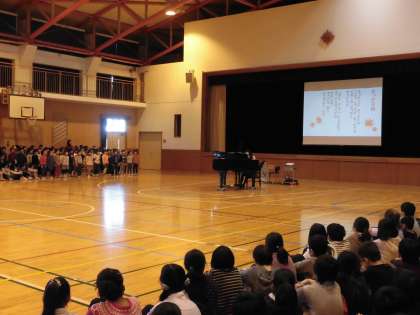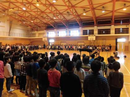 10日。今日から16日まで美しい日本語週間です。今日の2時間目は、体育館で全校児童が教科「日本語」の教科書にのっている作品の世界にひたりました。教科「日本語」の教科書にのっている唱歌を各学年児童が歌うのをお互いに聞き合い、日本語のリズムの美しさを全身で感じました。「ふるさと」を全校児童で合唱しました。いつまでも中町小学校が子どもたちの心のふるさとになってくれるといいです。最後に「使っても使っても減らないものは?」と校長先生から聞かれた子どもたち。「声」「愛情」などすてきな言葉が返ってきて驚きました。校長先生は、「美しい言葉」という答えを教えてくださいました。美しい正しい言葉を使うと周りの人の心も自分の心もうれしくなります。