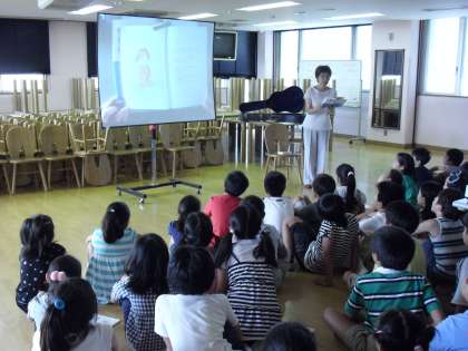 7月17日(土)に読書活動が行われました。3年生は「大型絵本」「言葉遊び」などを、お話ランドの方からしてもらいました。4年生は「読み聞かせ」などを、下川廸子さんからしてもらいました。藤田先生のギターが、心にしみるようでした。