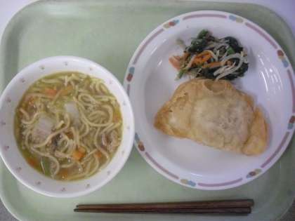 今日の献立は、牛乳、たんめん、ツナとポテトのパリッと揚げ、塩ナムルです。