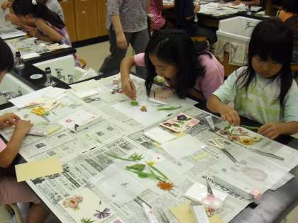 夏休みふれあい教室「押し花作り」2回目