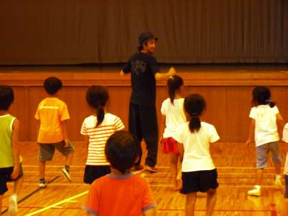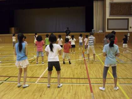 8月23日(月)夏休みふれあい教室「ダンス」がありました。真夏日続きの中、大勢の子どもたちが参加しました。マイケルジャクソンの幼少期の曲に合わせたステップをダンスの先生に教わりました。みんな1時間半ほどの時間、最後までがんばって踊っていました。