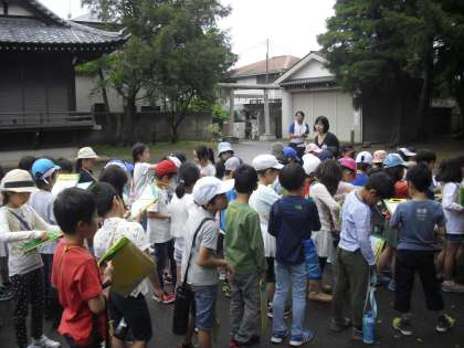 13日。大雨が予想されていましたが、曇り空の下、3年生は地域めぐりを行いました。中町地域で昔から大切にされてきた天祖神社を訪れたところで雨が降り、学校に帰りました。これからの社会科の学習で地域理解、地域を愛する心情を深めていきます。