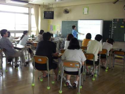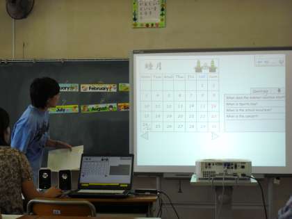 8月30日(月)英語活動研修会がありました。学校支援コーディネーターの永井淳子先生を講師として、6年単元「When is your birthday」の指導について先生方で検討しました。