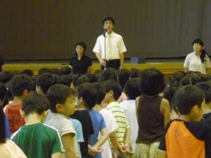 9月6日(月)に児童朝会が行われました。校長先生より今日から始まる「三校合同あいさつ運動」の話がありました。代表委員会からは「ユニセフ募金」の紹介もありました。