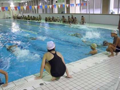9月7日(火)5・6年生の水泳記録会が玉中プールで行われました。1年間のまとめとして自分が挑戦する種目を決め、目標タイムをめざして泳ぎます。どんな記録が出たか楽しみです。最後に、学年男女対抗リレーを行いました。1位は6年男子、2位は6年女子、3位は5年女子、4位は5年男子でした。さすがは6年生ですね。6年保護者の方々も大勢応援に来られていました。また、各学年のプール納めも今日ですべて終わりました。