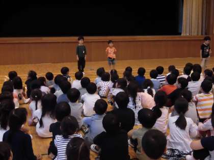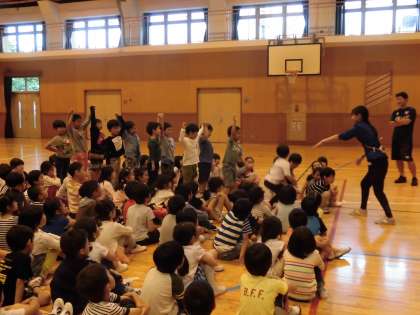 13日。あいにくの冷たい雨で実際にプールに入ることはできなかったので、体育館でプール開きを行いました。約束を守って安全で楽しい水泳の学習にしていきます。