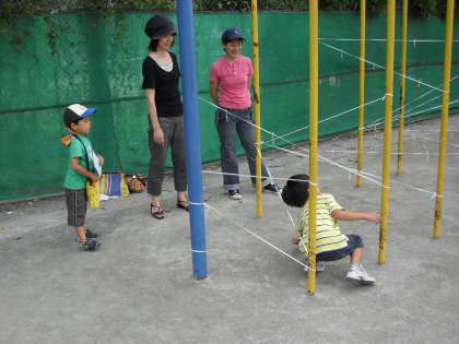 9月19日、中町小体育館と校庭で、「なかたまスクエアー」が開催されました。校庭では、おもしろ競技、体育館では林先生による「ヨガ」や幼児コーナー、昔遊び、卓球、ソフトバレーを行っていました。地域の人が運営する遊びやスポーツを楽しむ教室です。大勢の子どもたちが楽しんでいました。