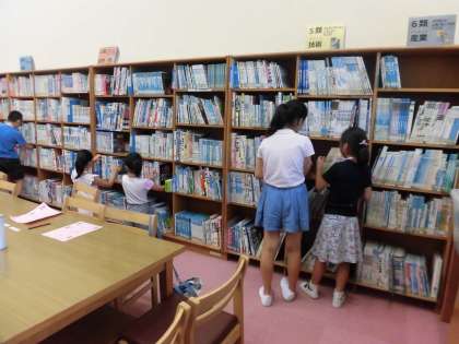1日。中町小学校の図書館は開放感があり、とてもすてきな図書館です。自慢したいところはたくさんありますが、今日はその図書館をさらにすてきにしようと司書さん体験をしました。司書さんがいつも行っているレファレンス業務や本棚の整理、飾りつけなど、今日だけは特別に体験させてもらいました。保護者の方にも協力していただきました。ありがとうございました。子どもたちが大好きな居心地の良い図書館をこれからもつくっていきます。
