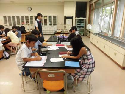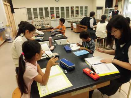 2日。玉川中学校の頼もしいお兄さん・お姉さんが夏休みの宿題や苦手な勉強をみてくれました。「みんな、すごいね。」「ぼくたちの出番がないなあ。」とお兄さん・お姉さんにほめられながら、勉強に集中して取り組む子どもたち。2学期も楽しみです。