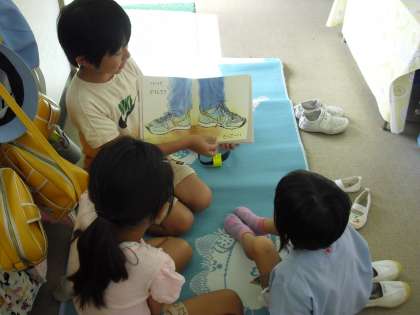 9月21日、2年生は中町幼稚園を訪れ、幼稚園児に読み聞かせをしました。自分で読むのと違って、他の人に物語の面白さが伝わるよう読むために練習してきました。園児は、目を輝かせ2年生の読み聞かせに聞き入っていました。