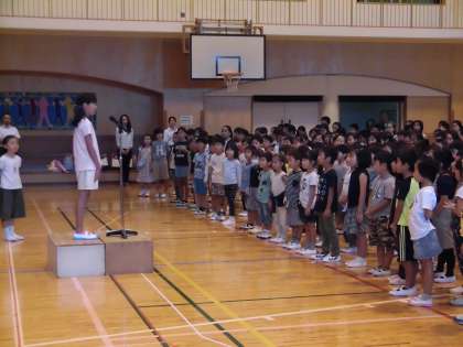 1日。夏休みも終わり、今日から2学期です。久しぶりに会う子どもたちは、一回り大きくなったようです。笑顔と達成感にあふれた2学期にしていきます。夏休み中に、中町小合唱団は快挙を成し遂げました。NHK全国合唱コンクール東京都大会の本選に進み、銅賞を獲得したのです。本当に素晴らしいです!! 努力は裏切りません。玄関に楯を飾ってありますので、ごらんになってください。