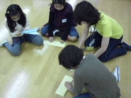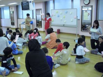 9月25日、学校協議会主催の「英語で遊ぼう」がありました。歌やゲーム、工作などの活動を通して、英語に親しめるようにしています。学校支援コーディネーターの永井淳子先生及び、英語指導者の方々にボランティアとして指導していただきました。また、PTA英語部の方々にもお手伝いしていただきました。