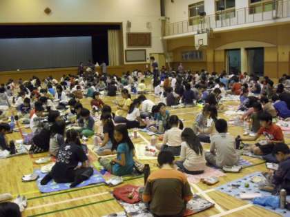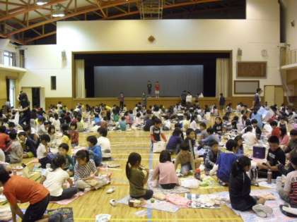 9月27日(月)は、たてわり班でのお弁当給食でした。体育館にシートを敷いて、他の学年やクラスの人たちと楽しく話をしながら食べました。