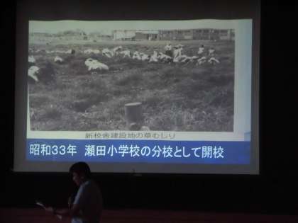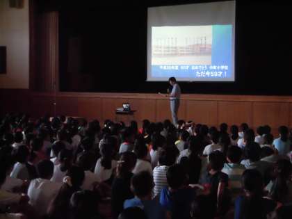 25日。今週の全校朝会では、校長先生から、中町小学校の歴史についてお話をいただきました。今年で中町小学校は59歳。できたころは、体育の時間に校庭の草むしりをしていたくらい、のどかな学校でした。22年前に、今のすてきな校舎に改築しプールも屋上にできました。そして来年はいよいよ60歳になる中町小学校。児童みんなでお祝いしようと今から楽しみにしています。