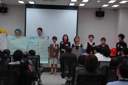 9月28日(火)1学期に行った日本GE社との連携活動「Healthymagination」で優勝したチームが、赤坂の日本GE本社において表彰を受けました。その際、プレゼンテーションも行いました。GE社社長さんの目の前でやや緊張気味の発表の様子です。