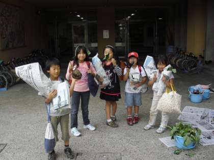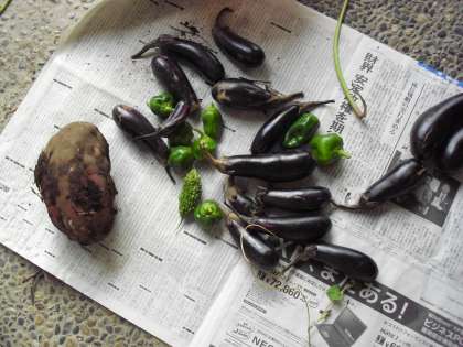 10月8日(金)2年生は新聞紙の包みを大切そうに抱えて家に帰って行きました。包みの中身は今まで丹精込めて大切に育てた野菜です。ナスやピーマン、大きなサツマイモもありました。どうやって食べるのか今から楽しみです。
