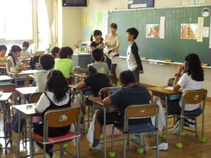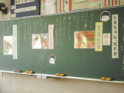 10月12日、4年2組で道徳センター校の研究授業がありました。授業者は、新国先生です。「信頼と友情」について、ちびまる子ちゃんとたまちゃんとのできごとから、自分の立場に置き換えて考え、話し合いました。今年度から本校は世田谷区の道徳教育のセンター校として、道徳授業を始め道徳教育を推進しています。今回は、区の各小中学校の道徳主任の先生方に授業を公開し、研修を進めました。
