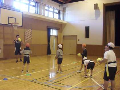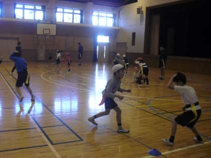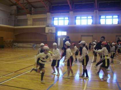 14日。リコーラグビー部「ブラックラムズ」の選手が中町小に来て、タグラグビーの出前授業を行ってくれました。現役選手の体の大きさに子どもたちはびっくり。タグラグビーのボールを使ったパスワークや巨大なラグビーボールを使ったリレーなどを通して、ラグビーの簡単なルールやチームプレーを学びました。3年生にちょうどよい学習内容が組み立てられていて、子どもたちは「もっとタグラグビーをしたい!」と意欲が高まりました。2年後のラグビーのワールドカップが楽しみになった子どもたちです。