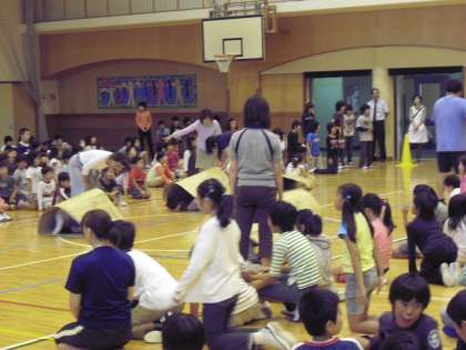 10月14日(木)に集会委員会による児童集会が行われました。クラスごとのダンボールリレーです。ダンボールの中をたてになったり、横になったり、工夫しながら次の友だちにリレーしていきました。すごいスピードが出たときやうまく動かすことができた時は拍手喝采でした。