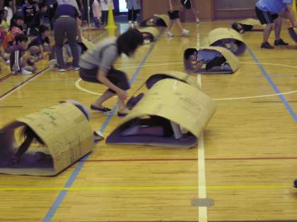 「児童集会(ダンボールリレー)」