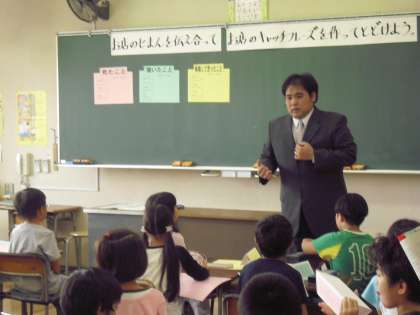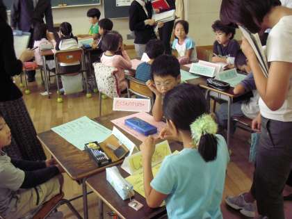 10月15日(金)に3年2組で研究授業が行われました。内容は総合的な学習の時間の「お店に弟子入りしよう」です。子どもたちはグループに分かれ、自分達が調べたお店の自慢を伝え合い、キャッチフレーズを作りました。今年度、中町小学校は家庭・地域社会と連携した活動を通して、「自ら考えを深め、広げていく児童の育成」を目指した研究を続けています。