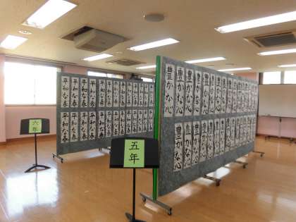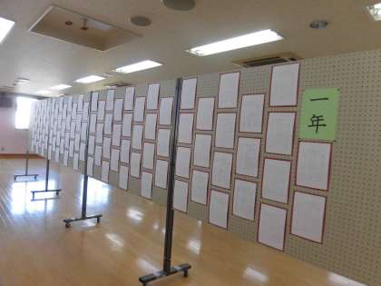 16日。昨日から22日までランチルームで書初め展が行われています。力作ぞろいです。冬休み中の練習の成果の賜物です。ご協力ありがとうございました。