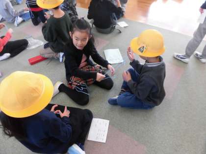 26日。2年生が1年生に昔遊びを教えてくれました。コマ、竹トンボ、羽つき、あやとり、カルタ、ビー玉など楽しむには、コツと根気がいる昔の遊びを2年生が優しく教えてくれました。高く竹とんぼを飛ばせるようになったり、複雑なあやとりができるようになったり。1年生のうれしそうな顔を見て、もっとうれしくなる2年生の子どもたちでした。