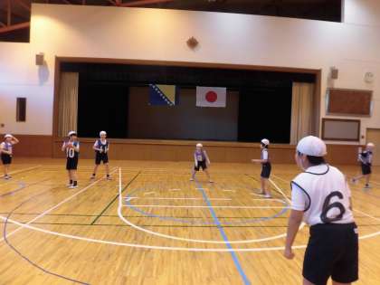 8日。今日は、ボスニアからお客様がいらっしゃいました。ボスニア・カントン県の教育大臣・副大臣、大学教授、小・中学校の先生、JICAの方々です。ボスニアで行われている体育の授業をさらによくしていくJICAの試みに連携協力するためです。日本の学校で行われている実際を見るため、中町小の体育の授業を参観しにいらっしゃいました。ハンドボールと跳び箱の授業でしたが、グループやチームで関わりあってすすめる授業に関心をもっておられたようです。どの子にも体育の楽しさを味わわせたいという教員の姿勢にも注目していました。