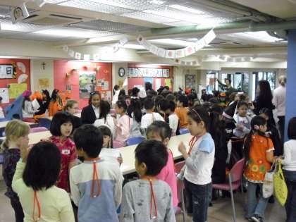 10月27日、3年生は清泉インターナショナルスクールを訪問しました。清泉の子どもたちが、グループごとに各教室を案内してくれました。小学校から高校まで併設され、いろいろな教室がありました。お菓子などどこでも自由に食べていいなど、自分の行動に責任を持つという考え方など日米の文化の違いに驚いていました。