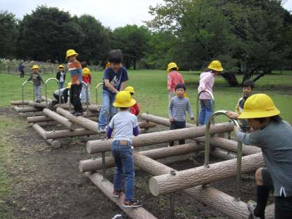 8月26日、1年生は砧公園へドングリひろいに行きました。事前に先生方がドングリがたくさんある穴場を見つけておきました。当日、穴場を中心に2時間ドングリひろいをしました。ドングリを初めてひろう子が多くいて、自然と触れ合ういい経験になりました。各クラスバケツ2/3杯ずつ収穫がありました。最後に公園の遊具で遊びました。