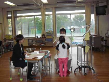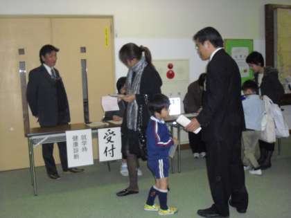8月28日、来年度入学する児童のための検診がありました。肌寒い中、就学児は元気に検診を受けていました。最後にPTAの役員さんから学校内の施設を案内していただきました。