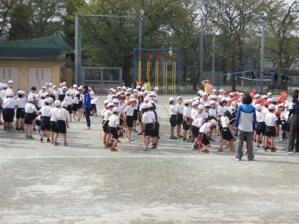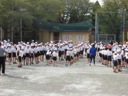 12日。今日は体育朝会がありました。木曜日の朝は体育朝会、音楽朝会や読み聞かせなどもりだくさんです。体育着に素早く着替え、整列もきびきびできました。クラスがスタートしてまだ間もないのですが、クラスの仲間と心とタイミングを合わせ、フラフープ送りに挑戦しました。