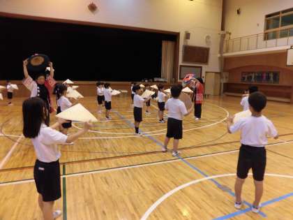 8日。2年生の子どもたちが民舞「花笠」を教えていただきました。簡単そうに見える一つ一つの動きですが、実際に動いてみると難しく、挑戦のしがいのある運動会の演目になりそうです。教えてくださった講師の先生からは、中町の子どもたちの素直さ、やる気が素晴らしいとほめていただきました。どの学年もこれから熱くなります。運動会を楽しみに待っていてください。