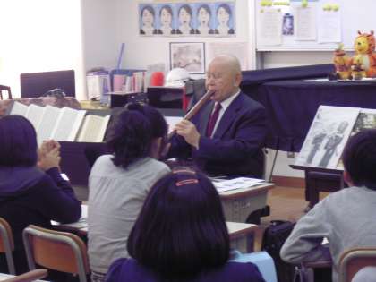 11月5日(金)6年生の音楽は「日本の音楽を味わおう」でした。講師の中村秀徹先生の尺八を聴きながら、尺八の音色、歴史、しくみについて教えていただきました。これからも日本の伝統的な楽器について学習していく予定です。