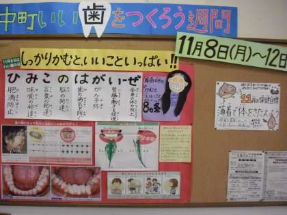 今週11月8日から12日まで、「中町いい歯つくろう週間」です。児童朝会で、保健委員会から全校児童に次のような呼びかけをしました。給食開始5分は、もぐもぐしっかり噛むことや食後はぶくぶくうがいをすることです。歯の役割や大切さを意識してもらいたいと思います。