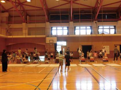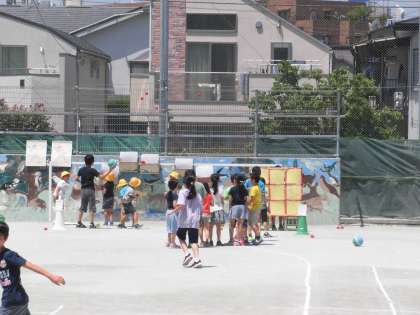 4日。梅雨に入る前の貴重な晴天となりました。今週は中町ランドウイークがあります。中休み、昼休みの時間、体育館や校庭にいつもと違う用具がお目見えします。いつもの休み時間だけでは身に付かない、投げる力、握力、俊敏性といった力を意識した動きができます。アスレチック施設のような体育館に大興奮の子どもたち。これからの日常生活でも意識して体を動かしていきます。