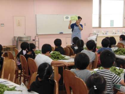 7日。今日の給食の献立のそら豆のさやを1年生がむきました。1年生が小さな手でさやをむく姿はかわいらしく、そら豆もいつもよりおいしく感じました。そら豆のフカフカの白いベッドを触ったり、においをかいだりといい体験ができました。体験から学べることはたくさんあります。ただ、学校で体験させることには、限りがあります。休日や夏休みなどに、自分で食材を育てたり、料理をしたりさせてみてください。