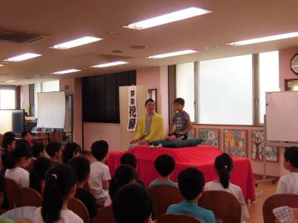 12日。今日は中町小学校に柳家花緑さんがお見えになりました。4年生の子どもたちは、扇子と手ぬぐいをもってお話を聞きました。プロの噺家さんの語り口、表情、動作に目を奪われます。小話や落語を話していただいた後、焼き芋やそばを食べる所作にみんなで挑戦しました。本当に熱々の焼き芋やそばを食べているように見える子もいました。落語は想像の話芸。噺家は一人しかいないのに、語りが始まると、あっという間に、江戸の町の賑わいや長屋の様子が見えてくるようです。本当に楽しいひと時でした。