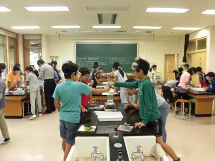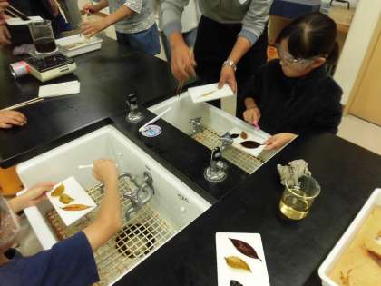 世田谷区では、小学5・6年生で科学に興味がある子どもを対象に「科学センター」という事業を行っています。61校の小学校を4つのグループに分け、各グループの中で科学センターを担当しています。今年は、中町小学校が科学センター担当校です。近隣の16の小学校から40名が参加します。知的好奇心と不思議と感じる心を大切に、学習に臨んでいってほしいです。今日は、開講式のあと、さっそく葉脈標本づくりを行いました。中町の子どもたちは、他の学校の子どもたちともすぐに仲良くなり、実験に取り組んでいました。