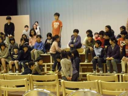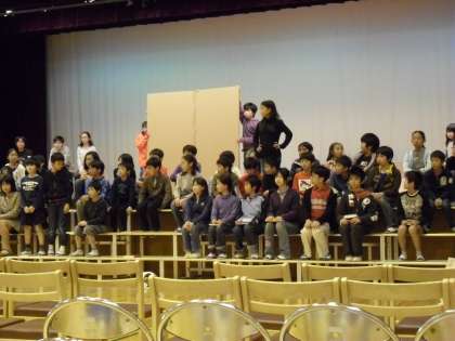 移動教室、社会科見学等で準備時間も少なく出遅れていた5年生も学習発表会の練習は佳境に入ってきました。5年生は「本の世界を」をテーマに、ブックトークで教えていただいた本や今まで読んだ本を紹介していきます。見ている人が本を読みたくなるように、登場人物の動きや台詞を上手に表現できるかがカギです。