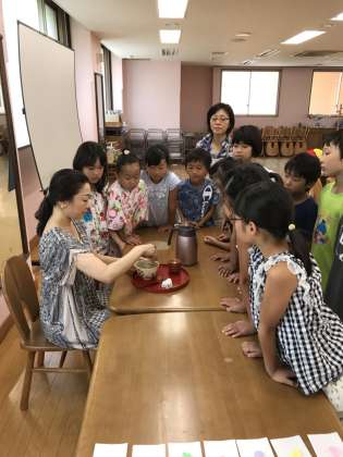 24日。ランチルームでテーブル茶道の体験をしました。茶道は、和室で正座で行うものと思っていましたが、略式化され親しみやすい茶道の流儀もあるようです。講師の先生に抹茶の点て方を教えていただいた後、子ども達も点てました。和菓子の代わりにアイスクリームを食べました。親しみやすい茶道でも、心や姿勢を整えたり、お客様をもてなしたりするという精神は大切にされています。