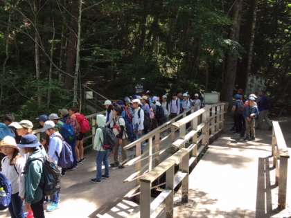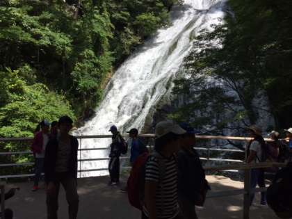 湯滝到着。ハイキング開始。昨日、小田代ヶ原にて熊出没?情報あり、コース変更しました。午後に足尾銅山に向かいます。