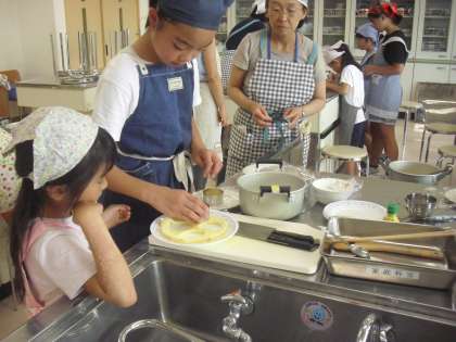 25日。今日のふれあい教室は、草笛教室とスイーツ作り。ランチルームでは、ニセアカシアの柔らかい葉を使って子ども達がすてきな音色を響かせていました。薄くて柔らかくて、毒性がない葉は他にもあります。ベビーリーフやほうれん草もなんと草笛に向いている葉です。ドレッシングをかける前に音色を楽しんでみてください。家庭科室では、高学年の子ども達が低学年の子ども達のお世話をしながら、涼しげなスイーツを作っていました。家でも作ってほしいです。