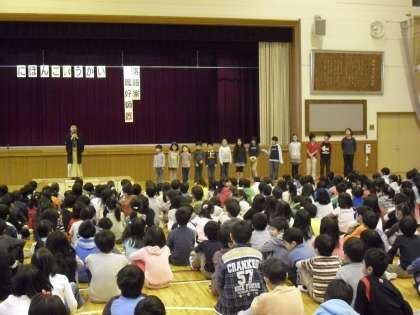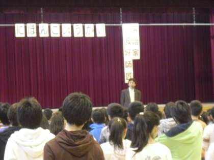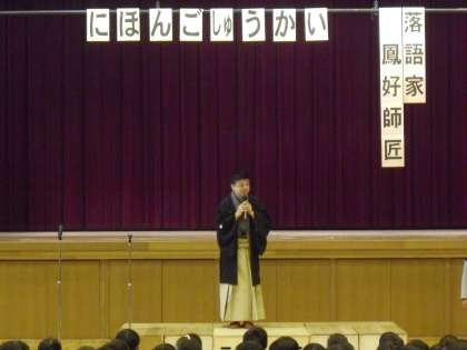 12月2日(木)に日本語集会が行われました。「整いました!」という言葉が流行っていますね。クラスごとになぞかけや小噺を発表しました。よくできている作品には大きな拍手と笑いが起こっていました。最後に、発表のご指導を受けた落語家の鳳好師匠より小噺を聞かせていただきました。