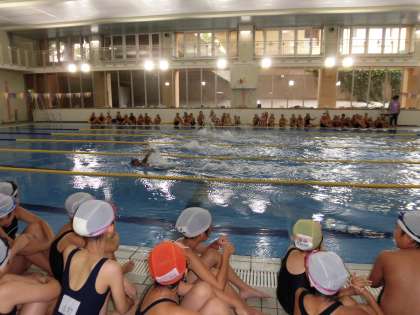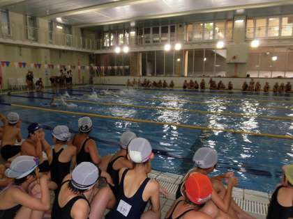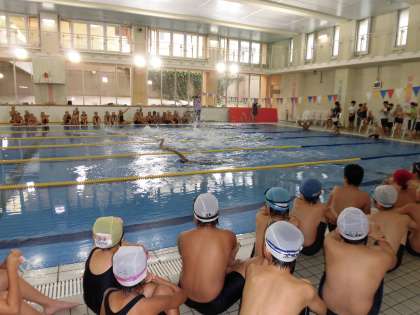 7日。中町小学校は、玉川中学校の温水プールをお借りして水泳記録会を行っています。天候に左右されず水泳記録会を実施できることは本当にありがたいです。今年も5・6年児童が水泳記録会を行うことができました。クラスや学年をこえ、大きな声で友だちを応援できる中町の子どもたちの姿に改めて感動しました。「疲れたあ。」といいながらもその笑顔は達成感にあふれていました。