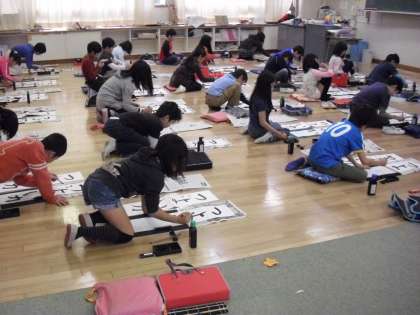 12月21日、3年生は「書き初め展」に向けて、「つよい力」の練習をしていました。3年生から習字の授業が始まります。初めて筆を持ち、8か月経ちました。どの子も最初のころと比べるととても上達しました。今日の練習では、誰もしゃべることなく全員が集中し、何度も練習を積み重ねていました。
