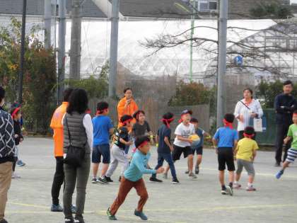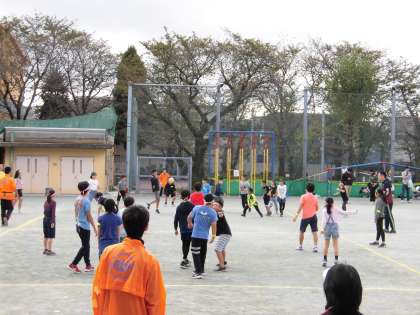 28日。中町小学校校庭が会場となり、毎年、上野毛地区のドッジボール大会が行われます。中町小・玉川小・瀬田小・桜町小の子どもたちや中学生、一般の大人の人もが大勢参加しています。いつも遊ぶ友だちとは違う子どもともすぐに仲良くなれるのが、スポーツのいいところです。