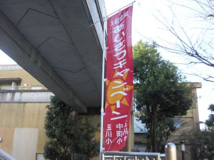 昨日から3校合同あいさつ運動が始まりました。門には幟を立て、校長先生、週番の先生、代表委員会を中心としたあいさつボランティア、そして今回から加わっていただいたPTA校外委員の方々であいさつをしています。地域の方々には、あいさつ運動のチラシを4町会に回覧で配布していただきました。3学期の始業式でも生活指導の先生から進んであいさつをするよう子どもたちに呼び掛けました。ご家庭でもあいさつ運動を始めてみてはいかがですか。