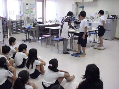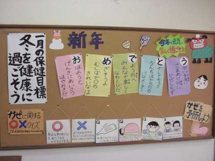 今日から3学期の発育測定が始まりました。身長と体重を測りました。9月と比べてどれくらい身長が伸びたか、体重が増えたかを保健と担任の先生に教えてもらいました。なお、保健室の掲示板には、今年の保健のめあてが掲示してありました。